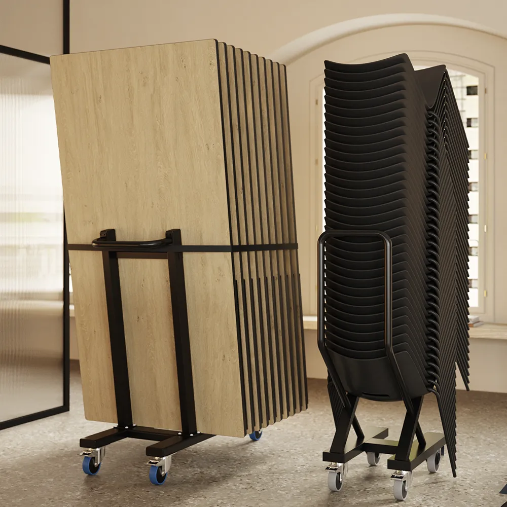 Stackable: 16 pcs freestanding or 30 pcs on trolley (optional)