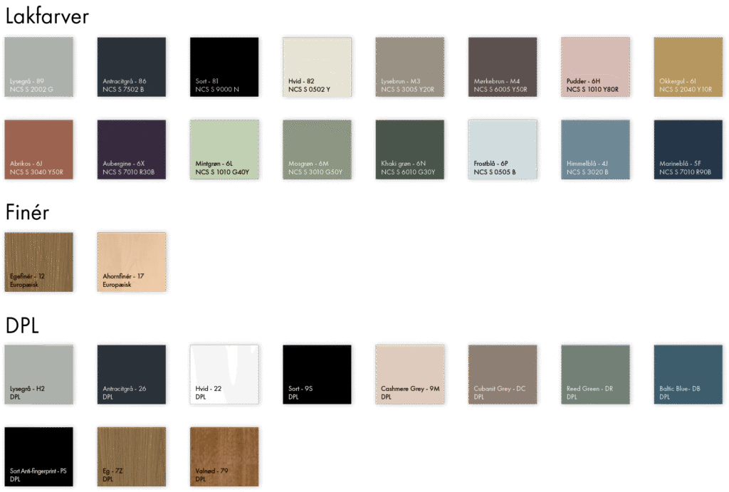 Se det komplette farve- og materialeudvalg